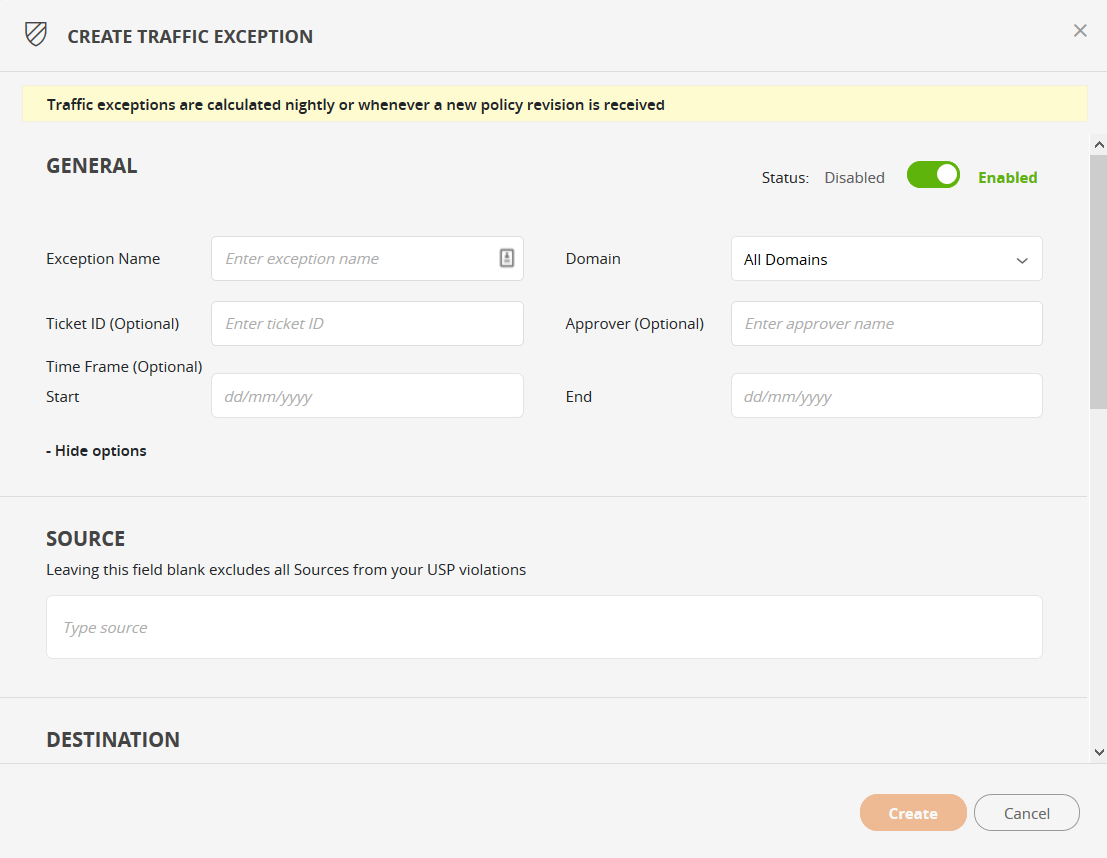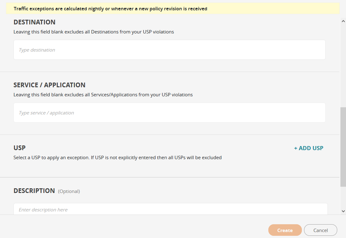 Click +ADD TRAFFIC EXCEPTION. The Create Traffic Exception screen is displayed.