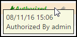 - You can manually change the authorization status. A tooltip shows the name of the administrator that changed the authorization status and when the status was changed.