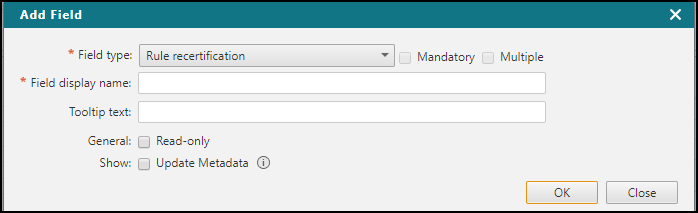 When you configure the rule recertification field in a workflow step, the the Field display name and Tooltip text are the same for every step that the field is added to. All other settings apply only to the current step.