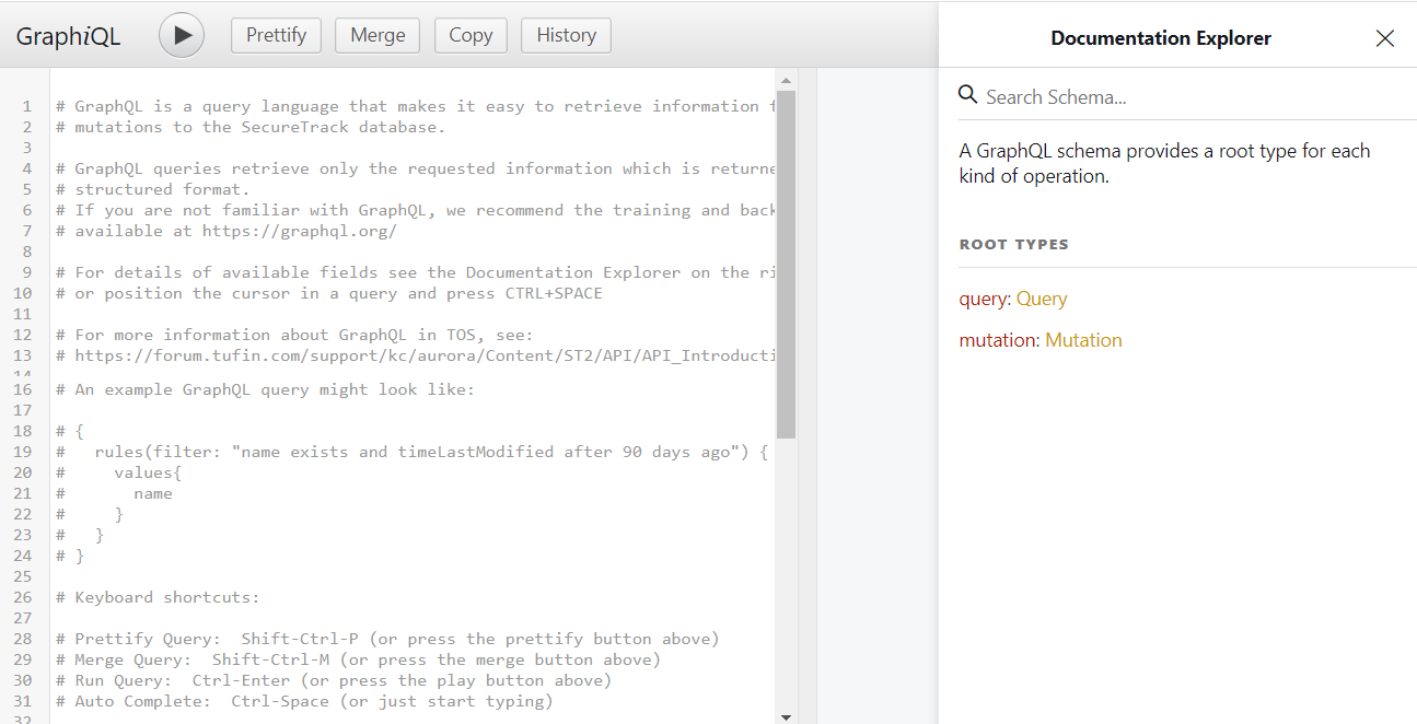 GraphQL APIs: GraphiQL, Tufin's GraphQL console