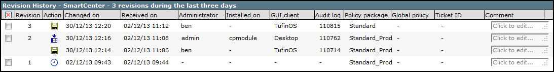 - Policy Package: The name of the policy package that was most recently open in SmartDashboard before the change was made. In most cases, this means that a change was made to this policy package.