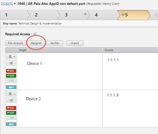 SecureChange>Tickets> Search for or open a ticket >Designer