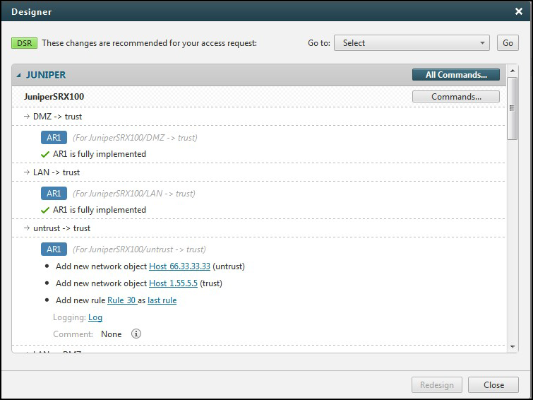 Once you have implemented the changes recommended by Designer, you can run Verifier to confirm that the changes were implemented, see Verifying Access Requests.