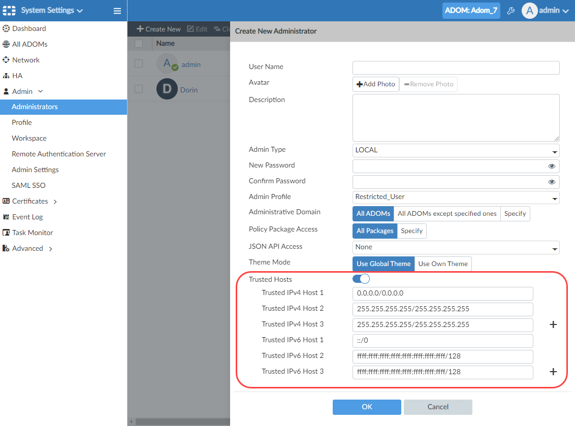 You can configure these permissions either in the Fortimanager command line interface, or in the user interface for the device.