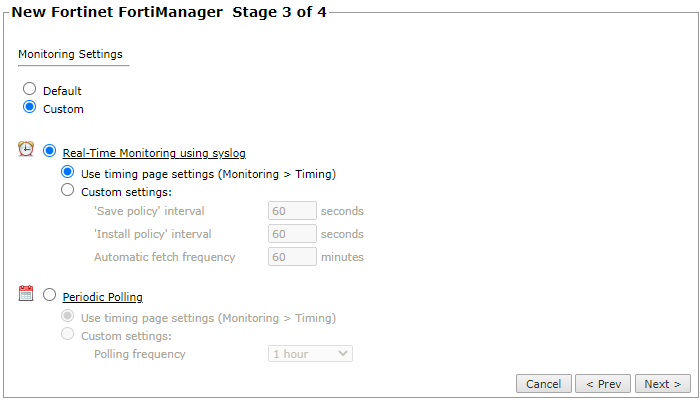 Real-Time Monitoring: Requires syslog configuration. Select Custom settings: