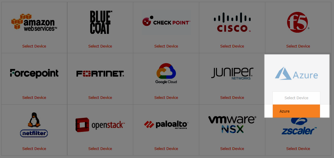The following example shows configuration options for an Azure device. Options vary depending on the device type.