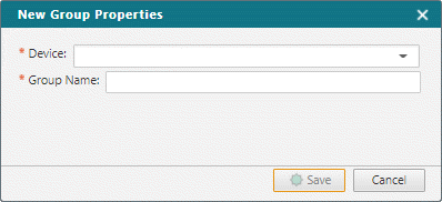 2. Select the device which is to contain the new group and enter a unique name. (object name validation is case sensitive, using the name "bob" and "Bob" will create duplicate objects and may cause an error during Provisioning). Click Save.
