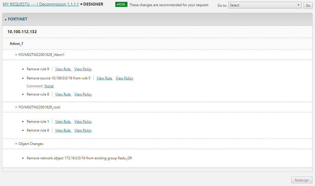 Review the original Decommission Network Object request below the list of instructions.