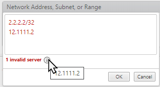 When you click OK, the DNS and IP address values are checked for validity.