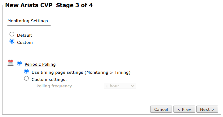 - In Periodic Polling, select Custom settings and configure the Polling frequency - the frequency at which TOS fetches the configuration from each device.