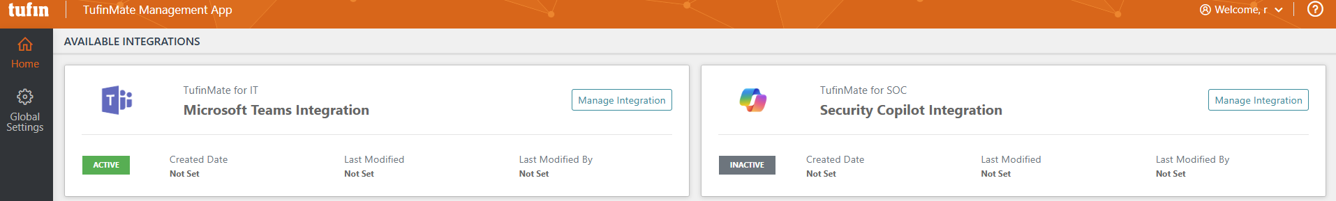 The TufinMate Management App is used to configure and manage the functions of TufinMate. It serves as the administrative interface where users can set global settings and integrate with other platforms such as Microsoft Teams.