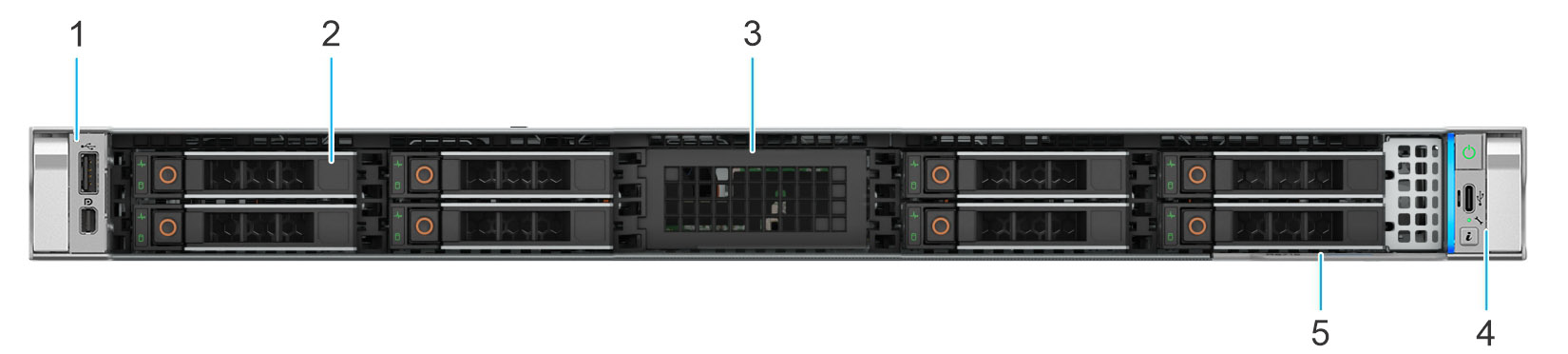 Contains the system health LED, system ID, power button, Type-C USB port, and the host status LED