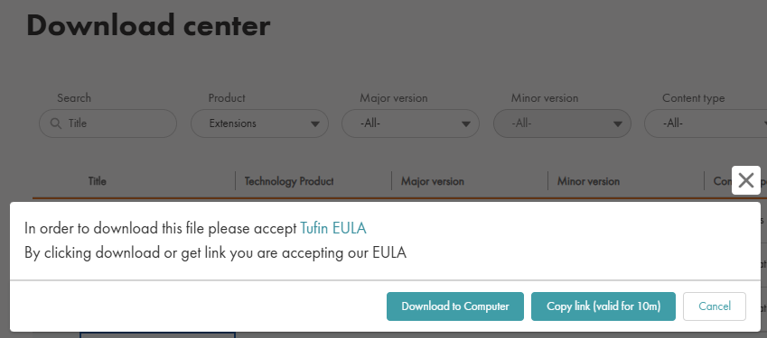 From the Download Center, select the Extension to download.