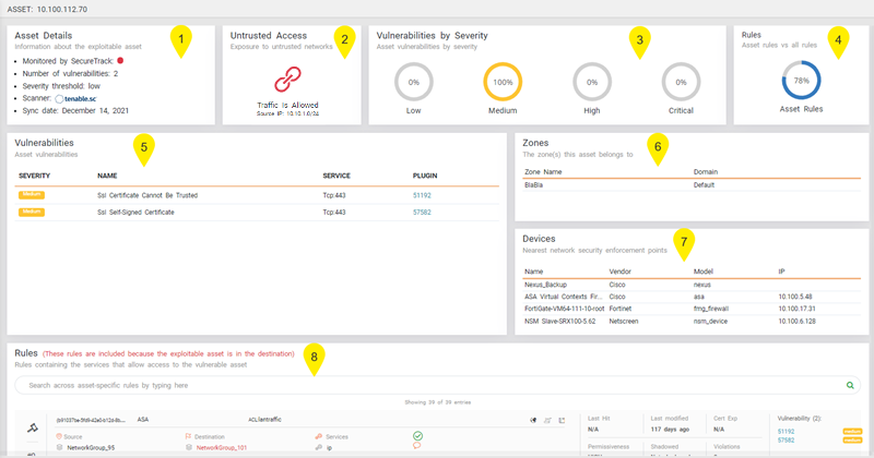 Vulnerabilities: Detailed information on the asset's network-based vulnerabilities.