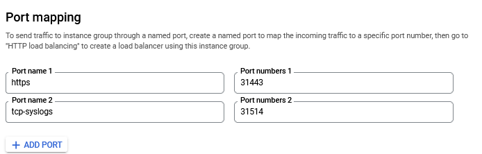 Due to a GCP limitation, UDP syslogs cannot be sent to the load balancer and must instead be sent directly to the node - see Sending Additional Information Using Syslog.
