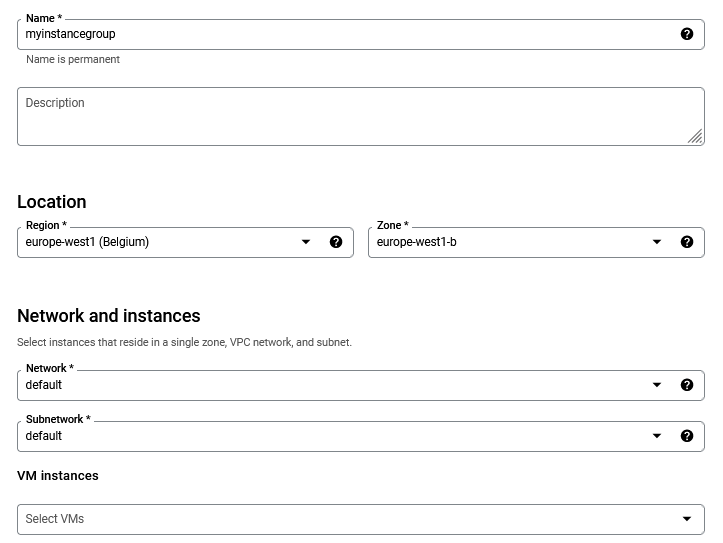 For more information about managing instance groups, see the vendor documentation Group unmanaged VMs together.