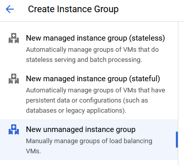 3. Select New unmanaged instance group (not the stateless or stateful options).