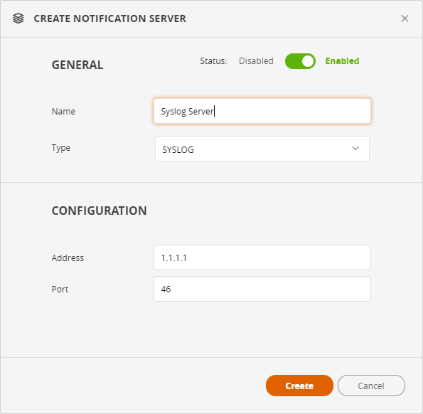 Type: Select the server type - Syslog, SNMPv2, or SNMPv3.