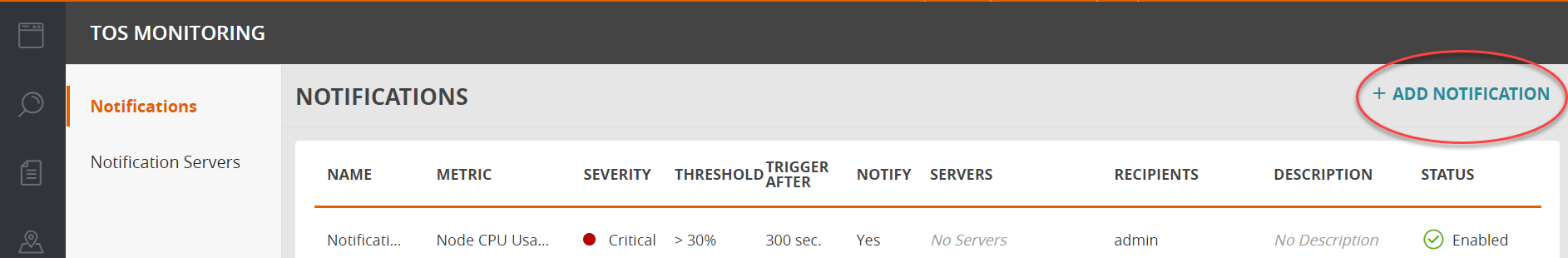 Select Notification Servers > Add Notification Server.
