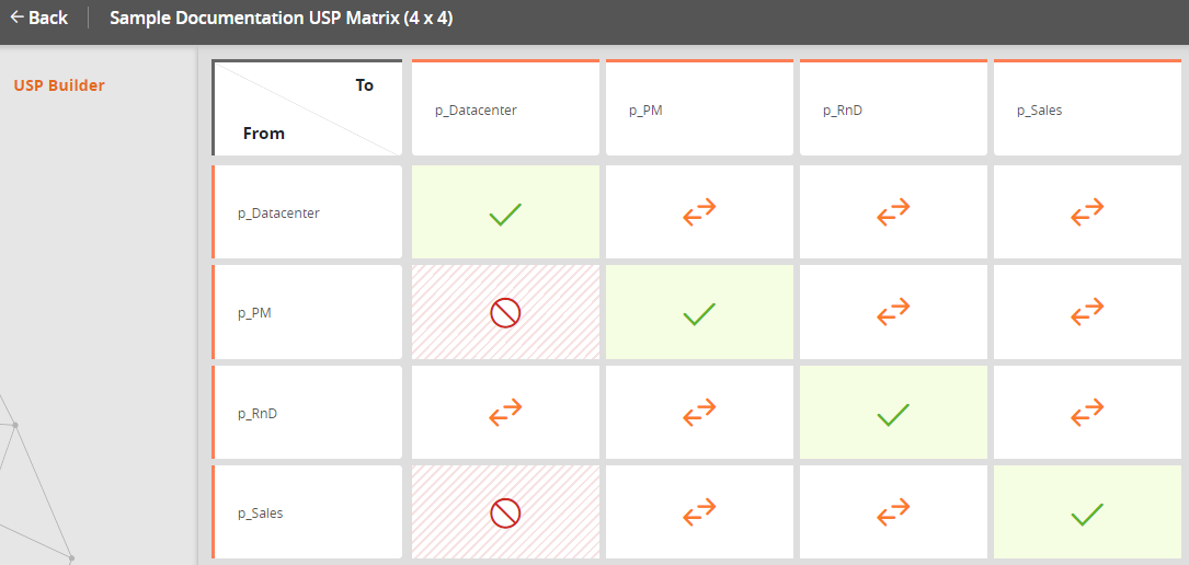 The sample code shown below creates a sample 4x4 USP matrix. After importing the zones and the USP, you will have the following USP: