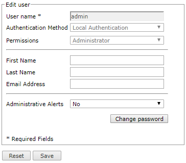 You can change some details of your own user account, including your name, email address, enable or disable administrative alerts, and your password.