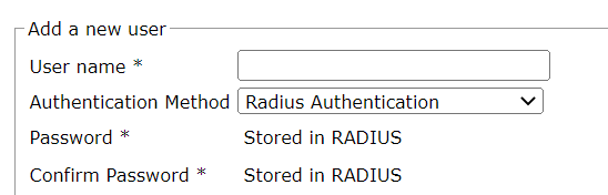 You can choose how users will be authenticated. If you select RADIUS or TACACS+, enter the user's name exactly as it appears in the RADIUS or TACACS+ server.