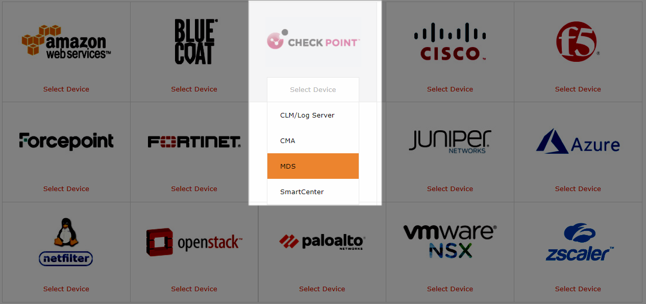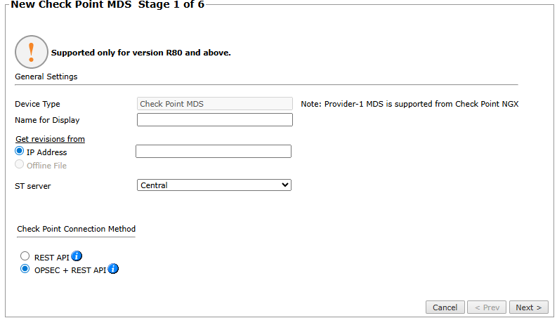 Device Type: Check Point MDS (filled automatically)