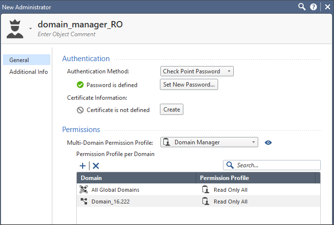 SmartCenter Manager profile with the Read Only All permission profile.CMA devices: