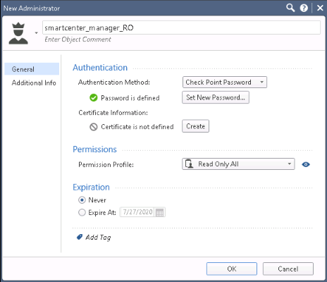 TOS uses Check Point APIs to connect to (and monitor) Check Point R80.x devices. A user with the SmartCenter Manager or Domain Manager profile who has the Read Only All Permission Profile configured for All Global Domains with the required collection access via the Check Point APIs can retrieve revisions for the device. On an SMC or a CMA: