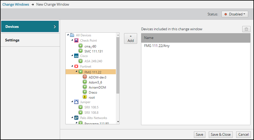During the configured change window, Tufin automatically commits the saved policies on the relevant firewalls. Each change window can be configured for multiple devices and a device can be configured in multiple change windows. The commit process only occurs for devices that are online, enabled, and running within the change window.