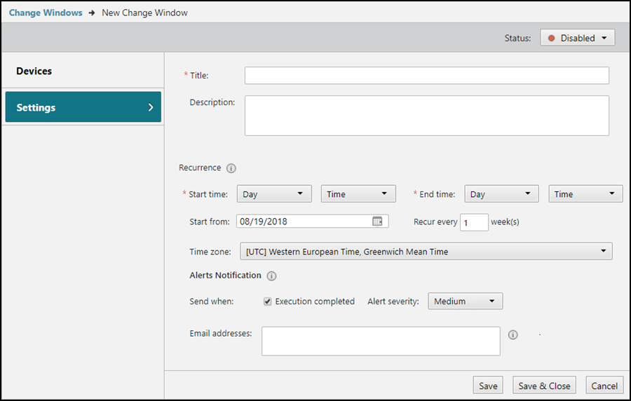 Status: Select Enabled or Disabled (default option) when you finish creating the new change window.