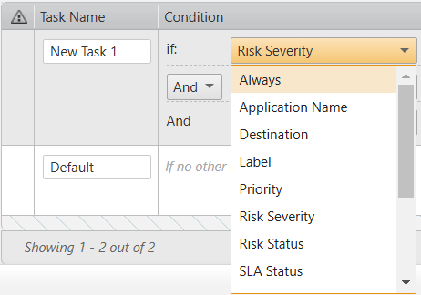 Define one or more conditions for the task to be generated. To create a task that is not dependent on a condition, select the Always condition.