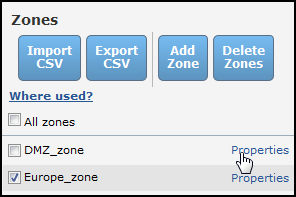 - Delete zone: Select the zones you want to delete and click Delete Zones.