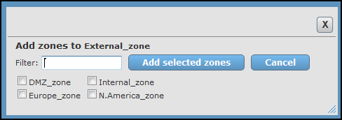 If there are many available zones, you can first filter the list by typing a Filter text. As you type, only zones whose names include the filter text are displayed.