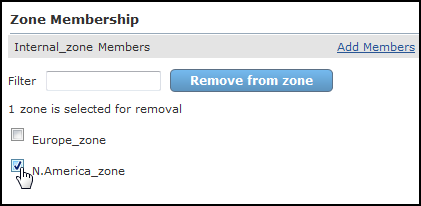 Zone Settings and controls (Zone properties, Where used?, and Delete) are the same as in the Zone List. Under Zone Membership, you can do the following: