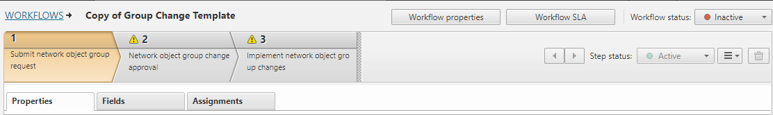 Use this template to create a workflow for users to request a change to a network object or to create a new network object. By default workflows created from this template contain the following steps: