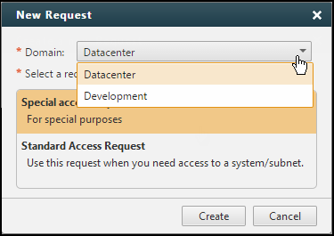 In multi-domain mode, if you are in more than one domain you can select the domain that you want to create the request in.