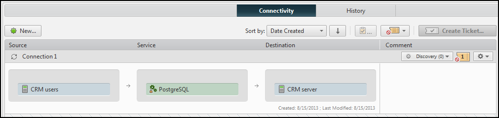 SecureApp shows all tickets that are open for connection changes, including tickets that were rejected. For rejected tickets, the requested changes are not implemented in the relevant firewall policy, but SecureApp shows the changes to the connection as if they were implemented. You can click the number of rejected tickets to see the list of tickets with links to each ticket in SecureChange, and an information tooltip that shows the reason for the rejection.