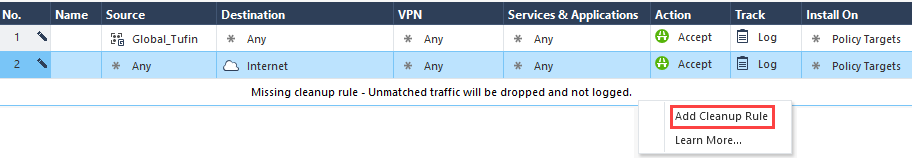 If you have an Application Control Policy layer, create a Cleanup rule that will send rule UIDs to SecureTrack.