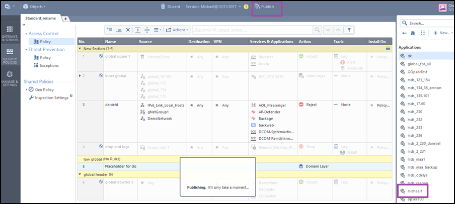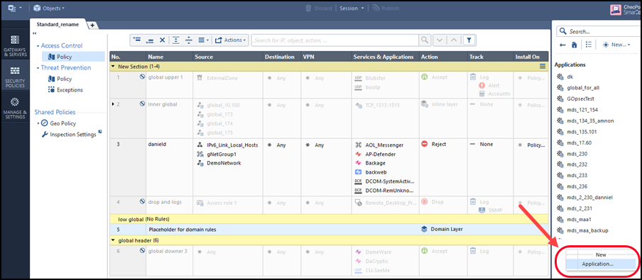 For a Provider-1 MDS: Open the MDG for the MDS and, in Global Policies, right-click a Global Policy and select Open selected global policy.