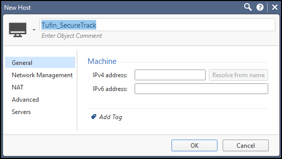 For all others: Select the Host object that you created for SecureTrack.
