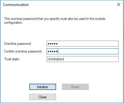 The Trust state changes to: Initialized but trust not established.