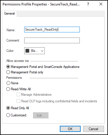 Note: For the SecureChange Designer to apply changes directly to Check Point policies, you must configure TOS to use an OPSEC object that has Read/Write All permissions. (Do not select Manage Administrators.)