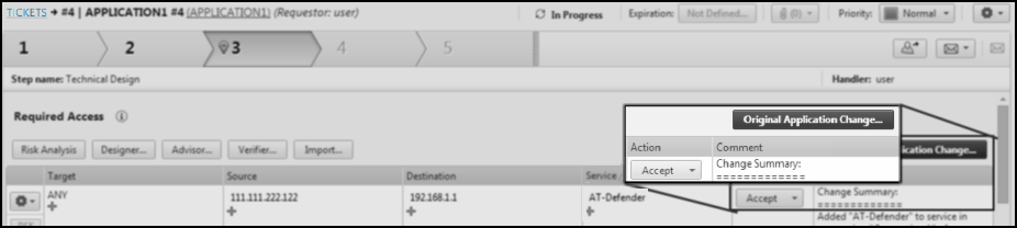 If you created the ticket from SecureApp, you can click Original Application Change to see the ticket as it was when it was submitted from SecureApp.