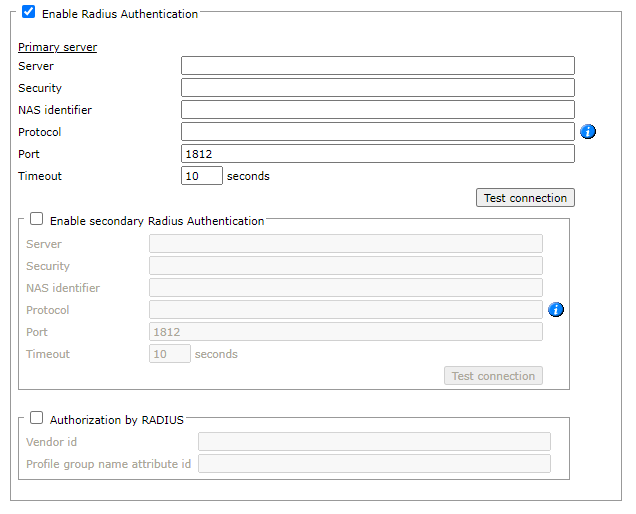 For each RADIUS server in the organization (Primary and Secondary), enter the server details from your organizational RADIUS administrator: