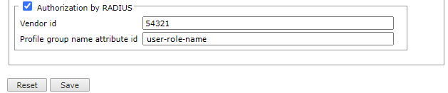 Configure the Vendor Specific Attribute that specifies the profile group and role of the authenticated user by entering the: