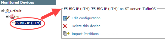 The F5 BIG-IP device now appears in the Monitored Devices tree.
