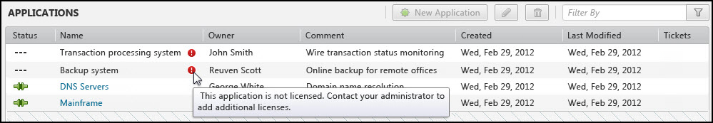- In SecureApp, go to the Applications view to see the license status in the applications list:
