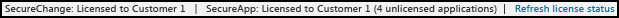 icon. The application content can no longer be accessed, so the application Name appears as text instead of a link: - The bottom left status bar indicates your license status. After you install a new license in SecureTrack, go to SecureApp's status bar and click Refresh license status to retrieve the updated data.