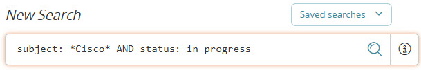 You can save a query to use again later. For example, you can save the filter subject:*Cisco* AND status: in_progress and save it under the name Cisco Tickets.
